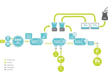 We have 2 production Line, they are named Co-Current and Counter -Current drying systems. This Both system has a different location of the furnace.
